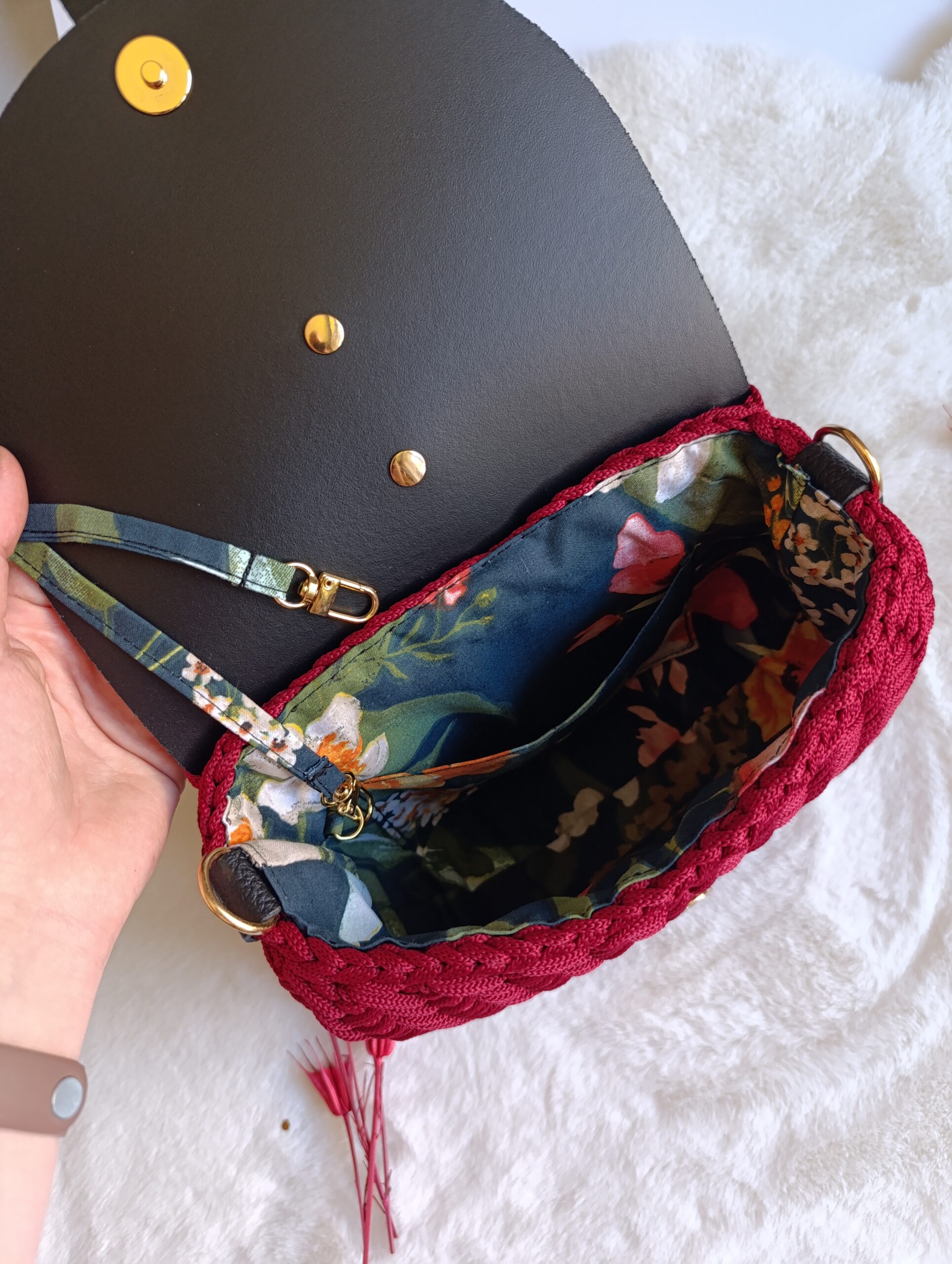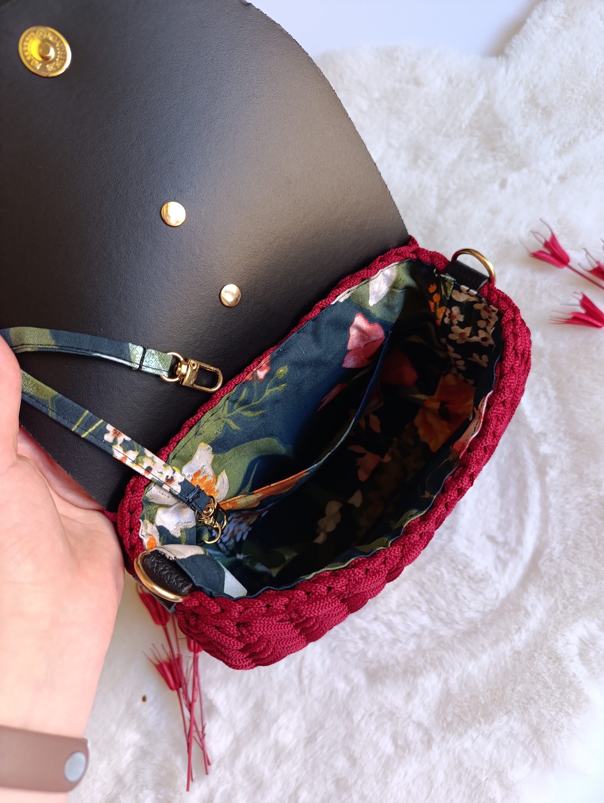 ✔ Podszewka – z kieszonką oraz poręcznym uchwytem na klucze, aby łatwiej było je znaleźć w torebce i nie zgubić.