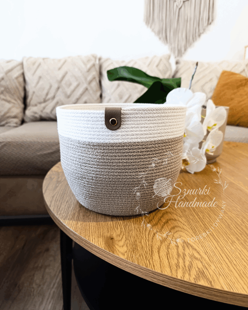 Ten kosz w kolorze ecru z ciemnym beżem to coś więcej niż kosz – to sposób na stworzenie ciepłego, przytulnego klimatu na co dzień ![]()