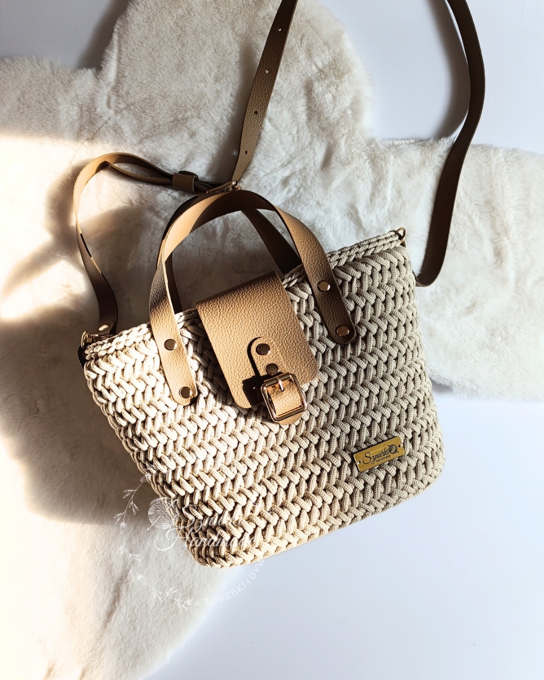 SKŁAD: skóra naturalna, sznurek poliestrowy, tkania bawełniana, metal, plastik