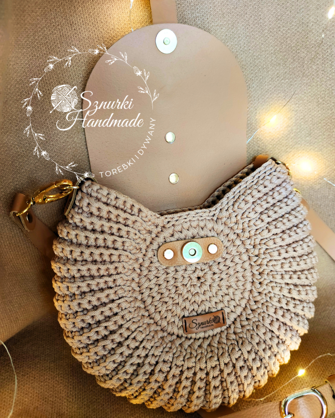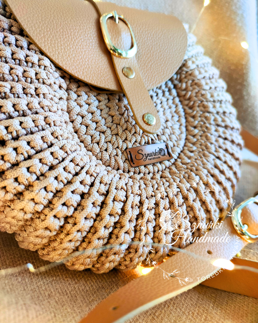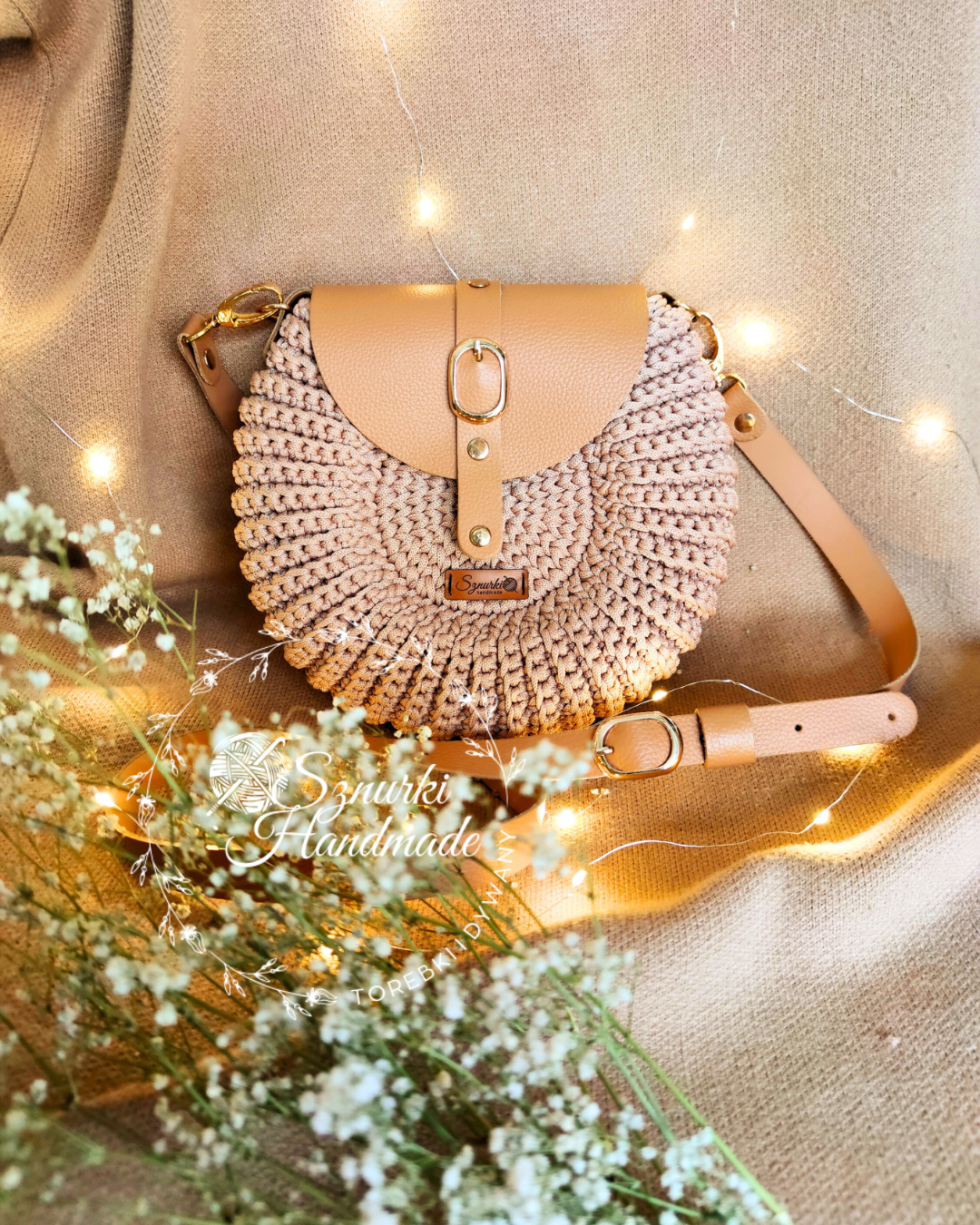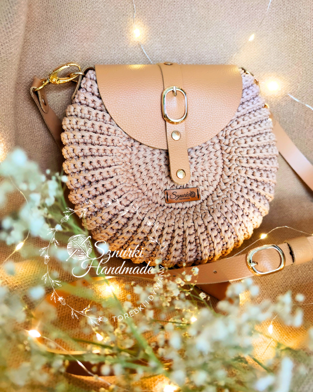 Model ręcznie szydełkowany, z elementami ze skóry naturalnej. Dobierz własne kolory! Znajdziesz je tutaj. Kolory rodzaj paska i opcję z podszewką lub bez wybierz przed dodaniem do koszyka.