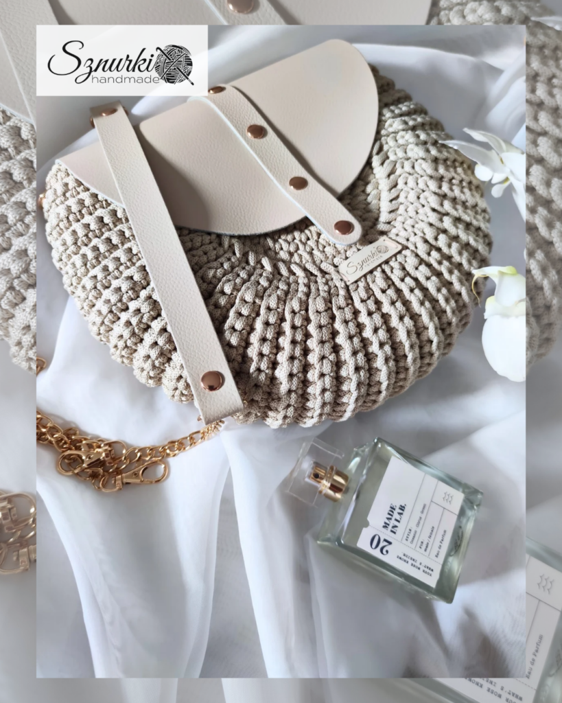Model ręcznie szydełkowany, z elementami ze skóry naturalnej. Dobierz własne kolory! Znajdziesz je tutaj. Kolory rodzaj paska i opcję z podszewką lub bez wybierz przed dodaniem do koszyka.