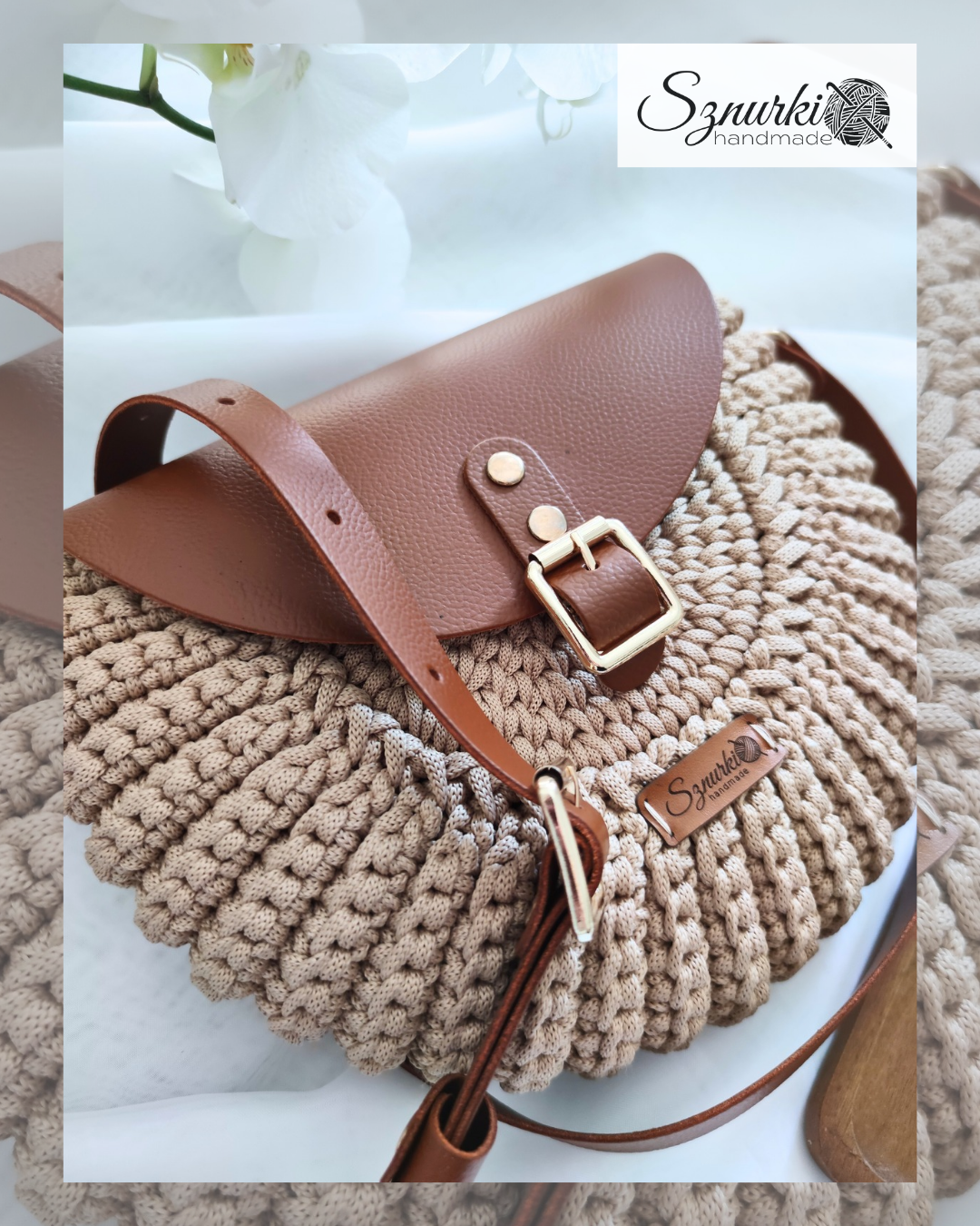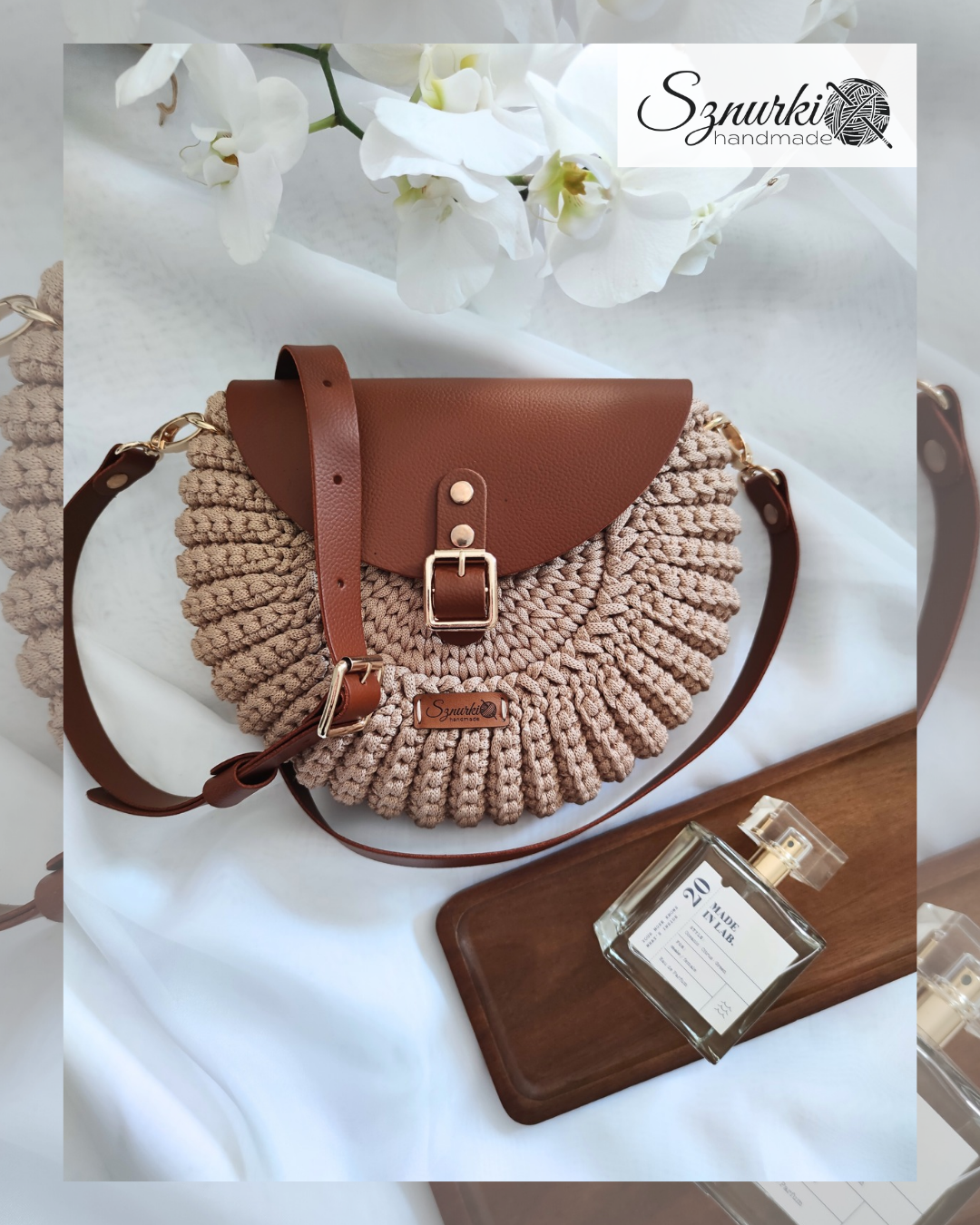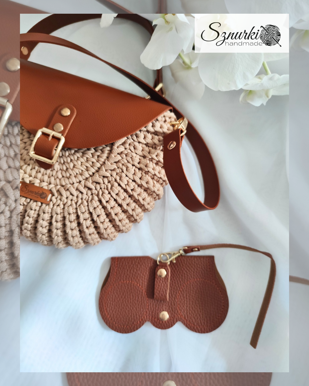 Model ręcznie szydełkowany, z elementami ze skóry naturalnej. Dobierz własne kolory! Znajdziesz je tutaj. Kolory rodzaj paska i opcję z podszewką lub bez wybierz przed dodaniem do koszyka.
