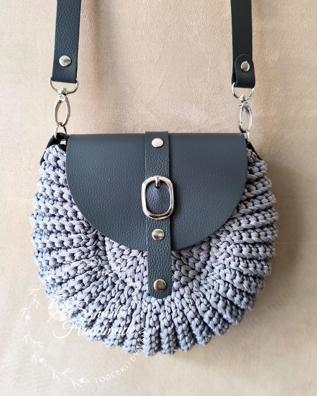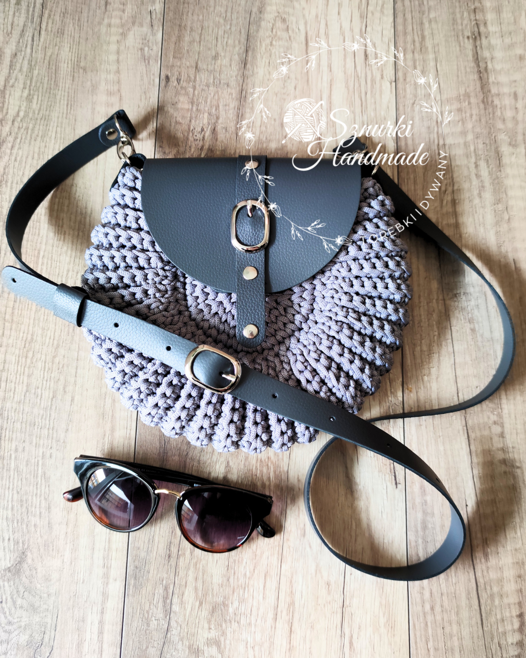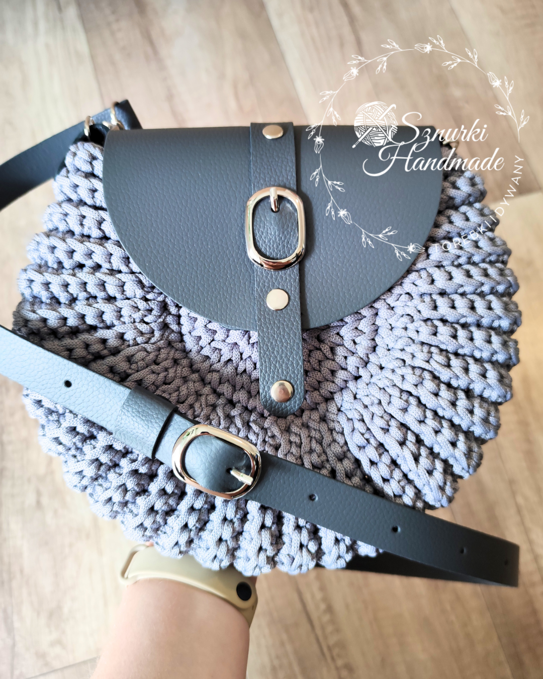 Model ręcznie szydełkowany, z elementami ze skóry naturalnej. Dobierz własne kolory! Znajdziesz je tutaj. Kolory rodzaj paska i opcję z podszewką lub bez wybierz przed dodaniem do koszyka.
