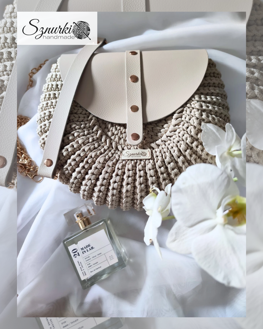 Model ręcznie szydełkowany, z elementami ze skóry naturalnej. Dobierz własne kolory! Znajdziesz je tutaj. Kolory rodzaj paska i opcję z podszewką lub bez wybierz przed dodaniem do koszyka.