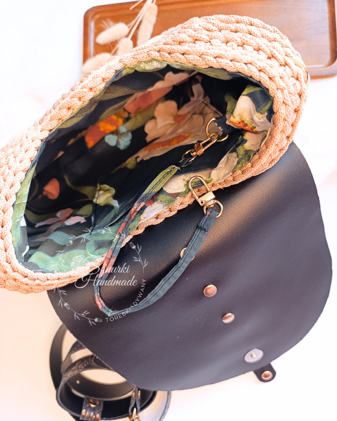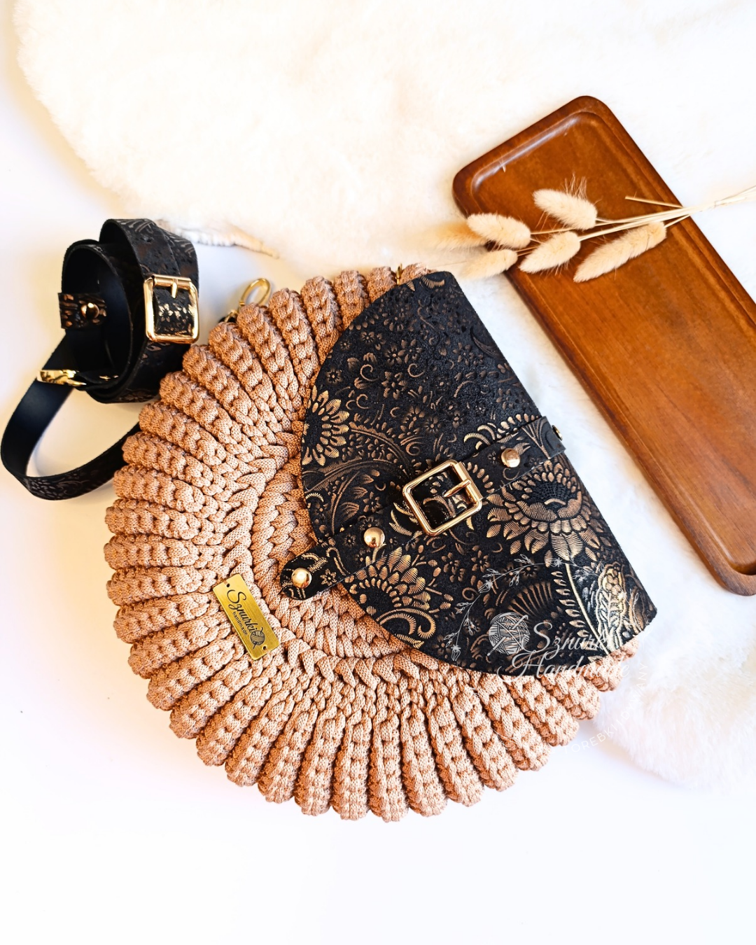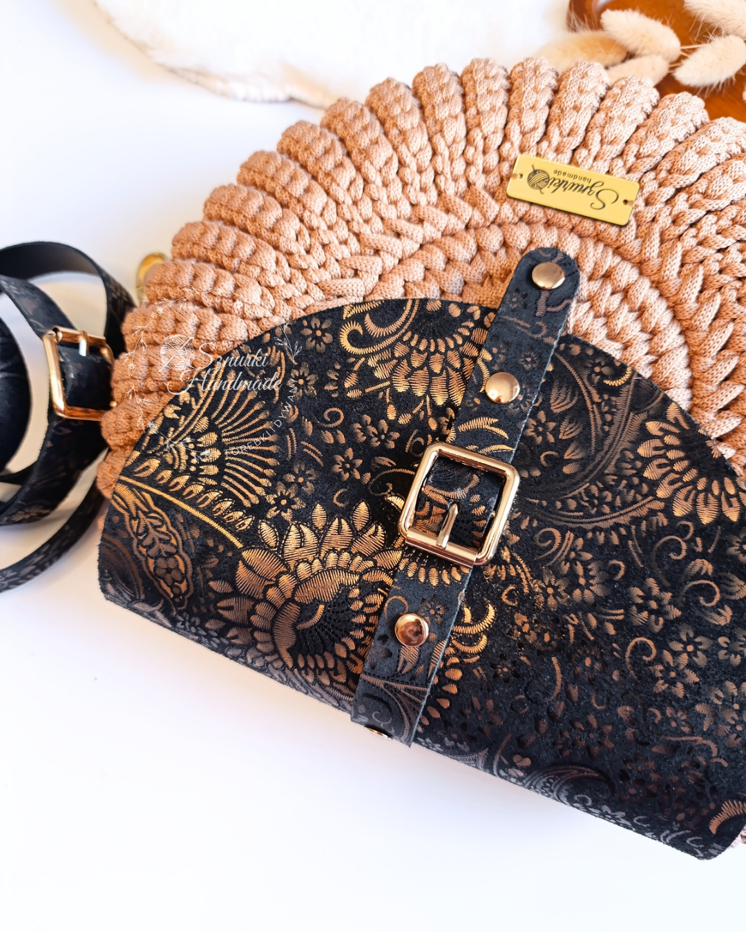 Dzięki ręcznemu wykonaniu każda torebka jest niepowtarzalna, a skórzane elementy dodają jej wyjątkowego charakteru, podkreślając luksusowy wygląd i trwałość.