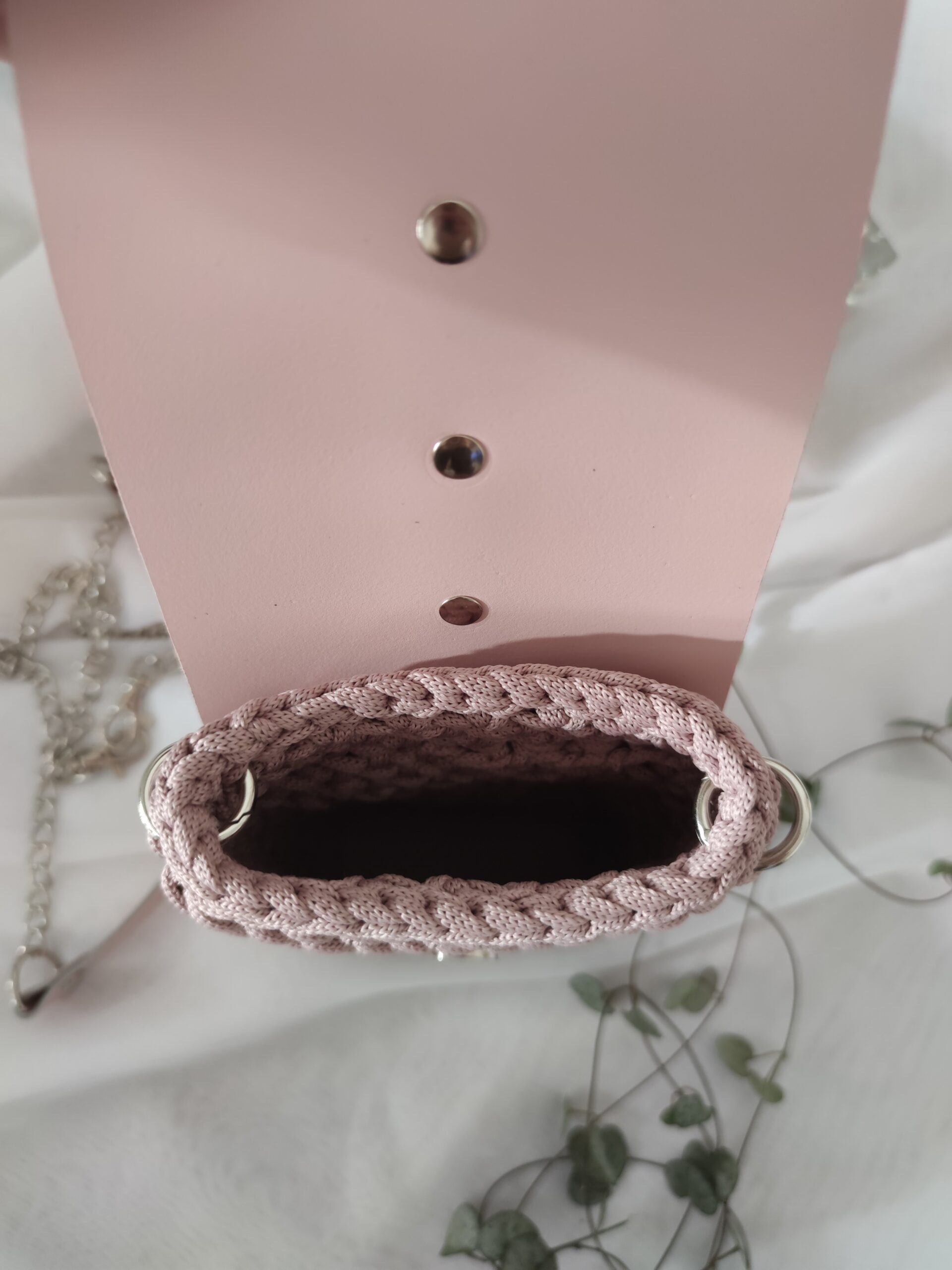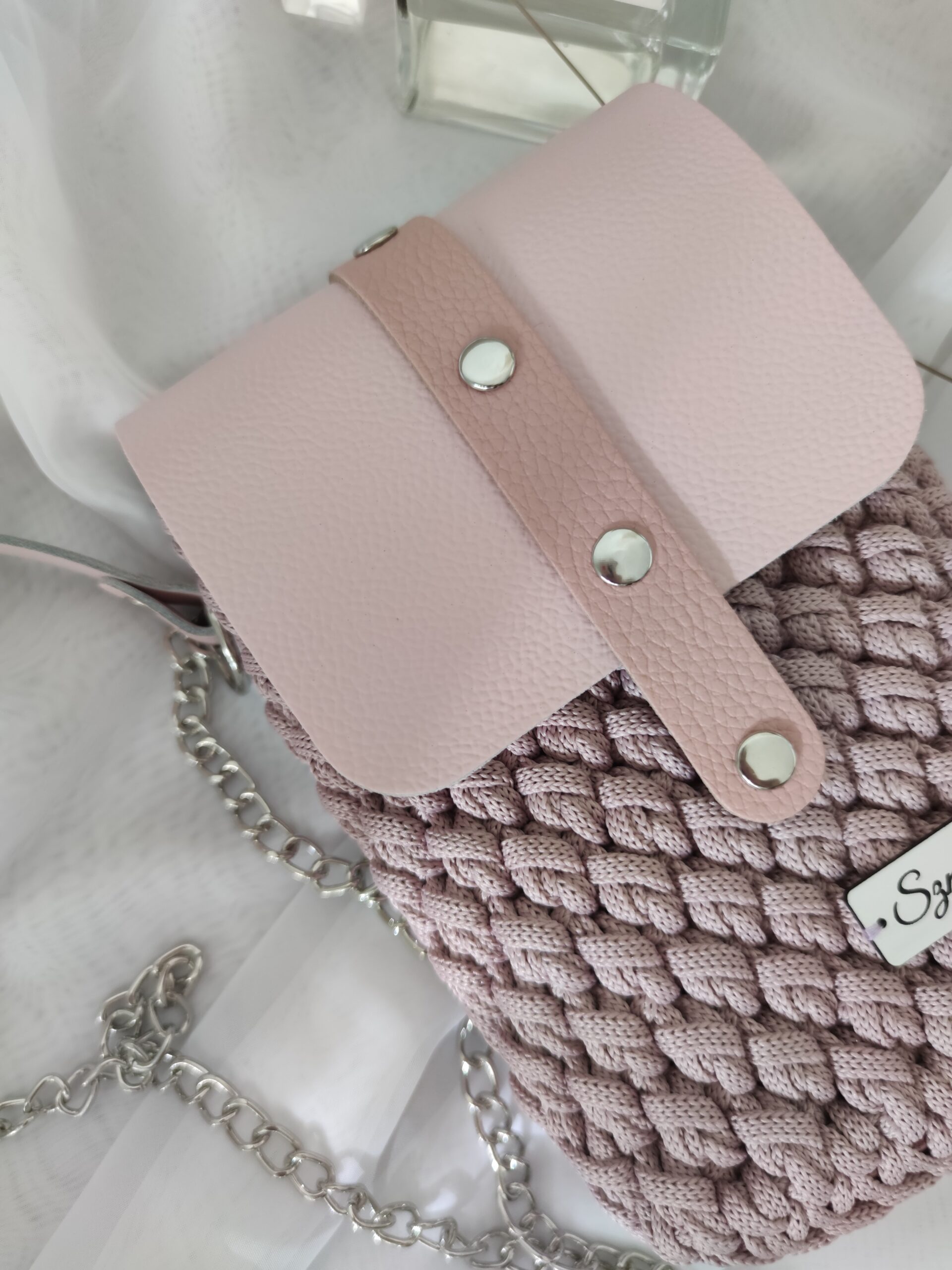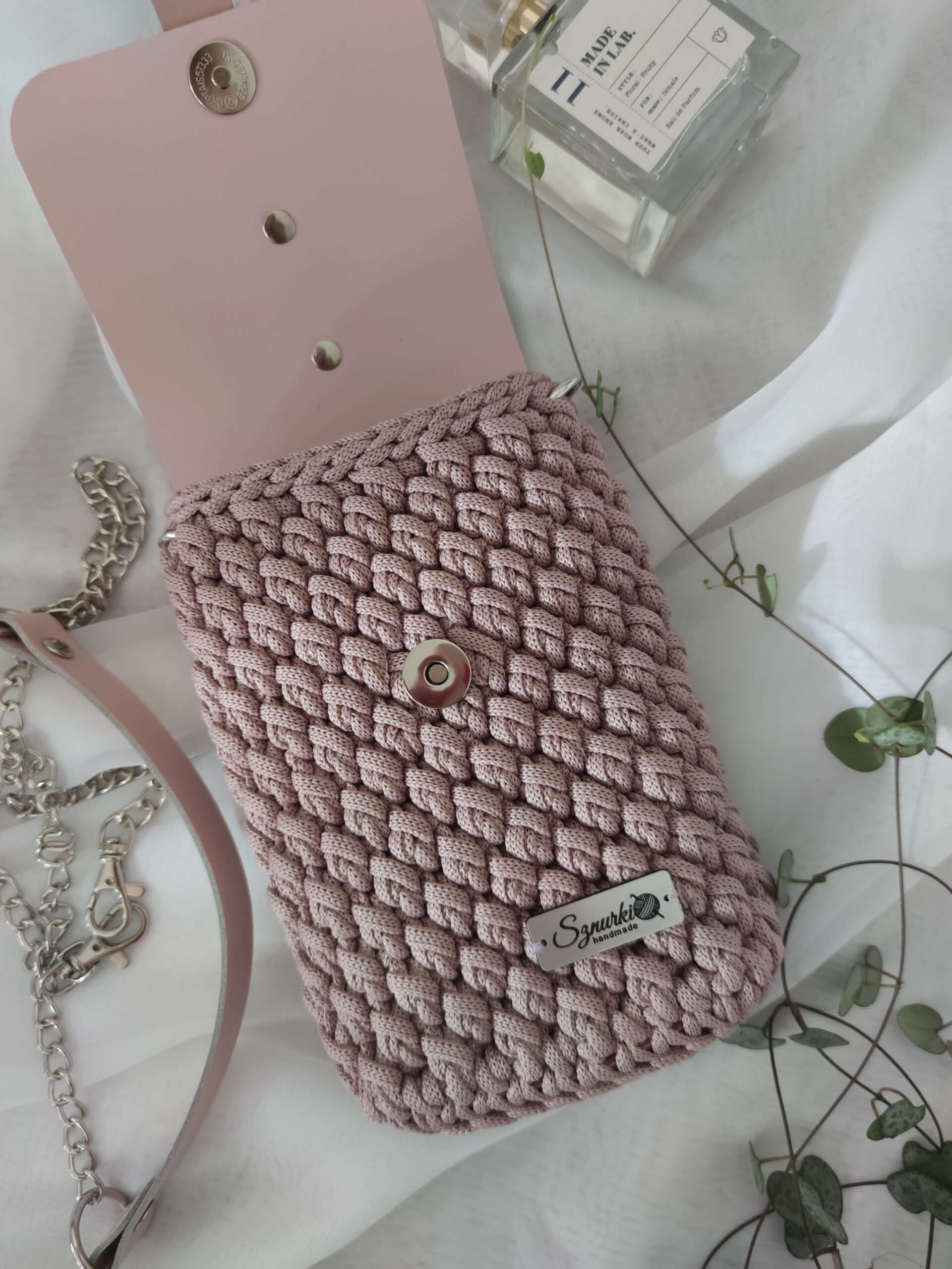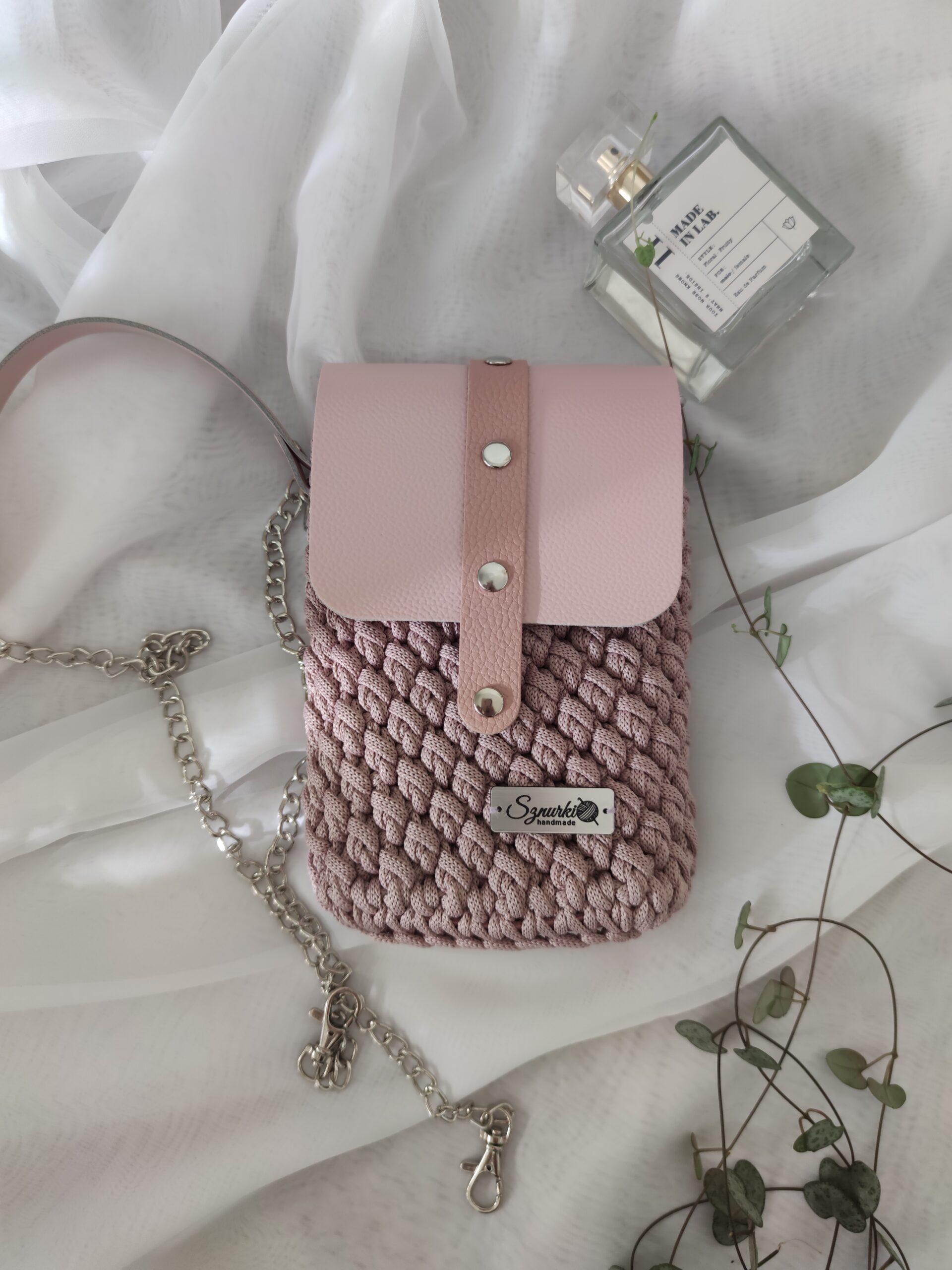 Mini torebka Phone Bag to stylowy i funkcjonalny dodatek, ręcznie szydełkowany z dbałością o każdy detal. Z elementami ze skóry naturalnej, łączy elegancję z trwałością. Jej kompaktowy rozmiar idealnie mieści najpotrzebniejsze drobiazgi, takie jak telefon, klucze czy pomadka. To doskonała opcja na co dzień, gdy chcesz mieć pod ręką tylko to, co najważniejsze, nie rezygnując przy tym z modnego wyglądu.