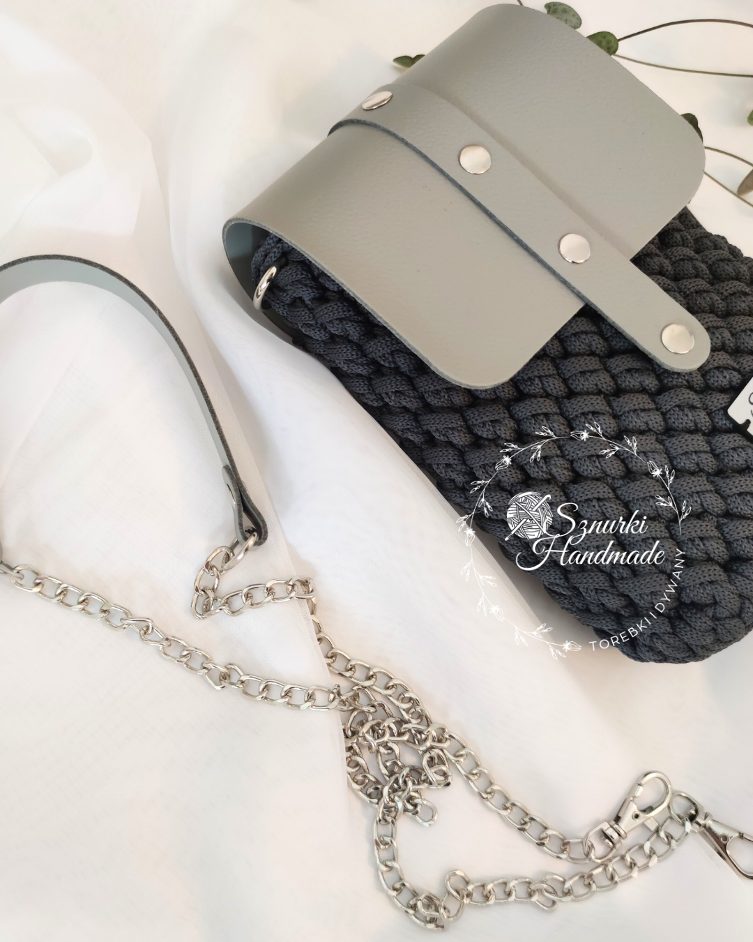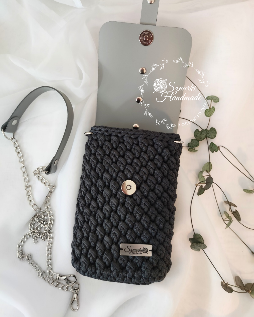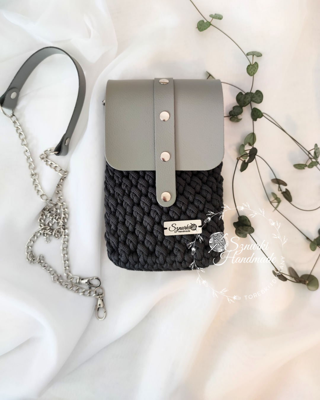 Mini torebka Phone Bag to stylowy i funkcjonalny dodatek, ręcznie szydełkowany z dbałością o każdy detal. Z elementami ze skóry naturalnej, łączy elegancję z trwałością. Jej kompaktowy rozmiar idealnie mieści najpotrzebniejsze drobiazgi, takie jak telefon, klucze czy pomadka. To doskonała opcja na co dzień, gdy chcesz mieć pod ręką tylko to, co najważniejsze, nie rezygnując przy tym z modnego wyglądu.